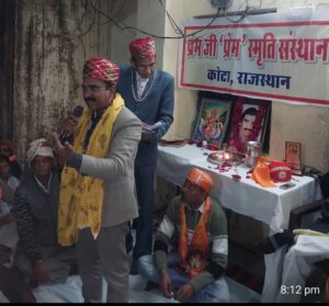 कोटा/ प्रेम जी प्रेम स्मृति साहित्य संस्थान द्वारा ग्राम घघटना में दिनांक 20 जनवरी को सुविख्यात कवि स्व. प्रेम जी प्रेम का 83 वां जन्मोत्सव समारोह भामाशाह राजेन्द्र मीणा की अध्यक्षता में मनाया गया । इस अवसर पर मुख्य अतिथि भाजपा के लोकप्रीय नेता पंकज मेहता रहे । विशिष्ट अतिथि – मानसगांव पंचायत सरपंच नरेश मेघवाल, बंटी मेघवाल एवं धर्मेन्द्र मीणा रहे ।