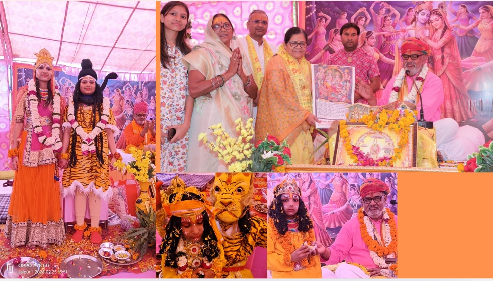 जयपुर/उर्मिल हॉस्पिटल परिवार की तरफ़ से चल रही जयपुर के प्रताप नगर सेक्टर – 11 भैरू सर्किल पर पार्श्वनाथ पार्क में श्री मद् भागवत कथा में , कथा वाचक आचार्य श्री लक्ष्मी नारायण जी महाराज से सांसद श्री मति मन्जु शर्मा ने आशीर्वाद प्राप्त किया। भगवान के चोबीस अवतारो की कथा सुनी । और शुकदेव जी की सुंदर झांकी पंडित नवल शास्त्री कुण्डेरा सवाई माधोपुर वालो ने बहुत सुंदर आकर्षित झाकी सजाई गईं। जिसमे भगवान के प्रति आस्था , धर्म विश्वास की पूर्ण मूरत दिखाई दी। झाकी में प्रहलाद ध्रुव व हिरण कश्यप की कथा और शिव पार्वती के विवाह की कथा वाचन किया गया । जिसमे सांस्कृतिंक परम्परा की झलक देखने को मिली । महिला मंडल व पुरुष मंडल द्वारा नाच गाकर भागवत कथा में आनंद लिया।