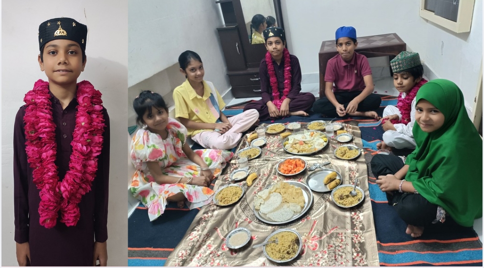 उमैर रज़ा ने सुबह सहरी के साथ रोज़े की शुरुआत की और पूरे दिन बड़े उत्साह और धैर्य के साथ रोज़ा रखा। शाम को इफ्तार के समय परिवार के साथ उन्होंने रोज़ा खोला। इस खास मौके पर घर में खुशियों का माहौल बना रहा और परिवार वालों ने उमैर को दुआएं दीं।