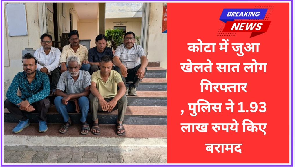 कोटा। शहर में अवैध गतिविधियों के खिलाफ चलाए जा रहे अभियान के तहत रानपुर थाना पुलिस ने बड़ी कार्रवाई करते हुए सात लोगों को जुआ खेलते हुए गिरफ्तार किया है। पुलिस ने आरोपियों के पास से 1 लाख 93 हजार 500 रुपये की जुआ राशि और 52 ताश के पत्ते बरामद किए हैं।