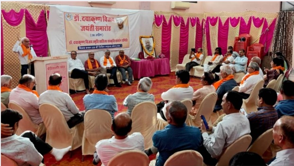 आकाशवाणी कोटा के सहायक अधिकारी रामनारायण हलधर ने डॉ दयाकृष्ण विजय के जीवन चरित्र पर प्रकाश डालते हुए कहा कि ड़ा. विजय साहित्य जगत में राष्ट्रीय स्तर के प्रमुख मनीषी रहे हैँ, उनकी रचनाओं के आलोक में भी वे लंबे समय तक याद रहेंगे। उन्हें आसानी से भुलाया नहीं जा सकेगा। ”