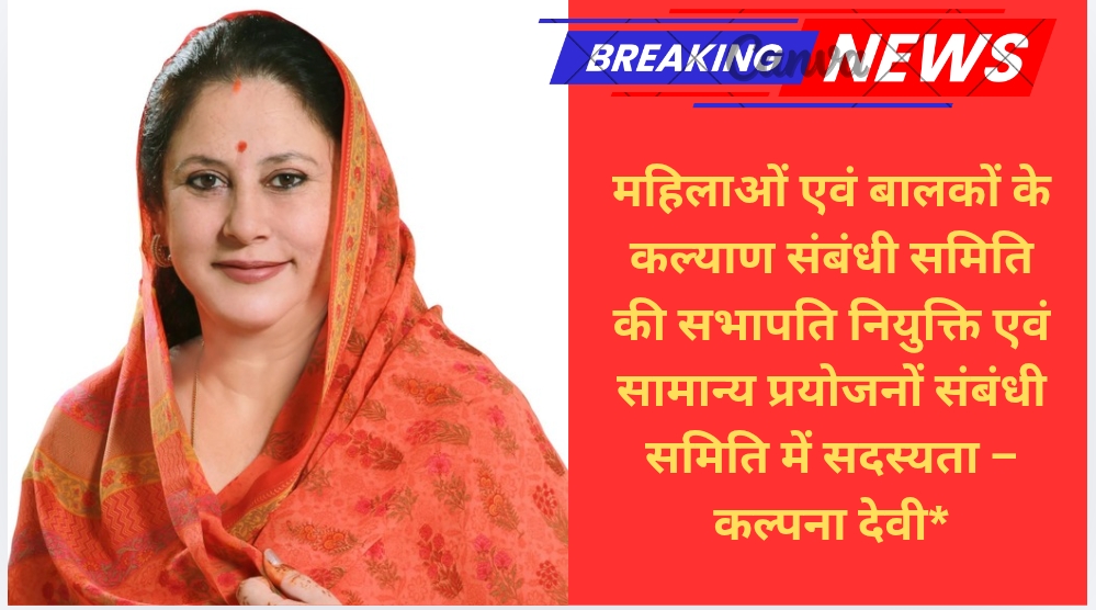 कोटा/विधानसभा समितियों के गठन के अंतर्गत विधायक कल्पना देवी को महिलाओं एवं बालकों के कल्याण संबंधी समिति का सभापति नियुक्त किया गया है। उल्लेखनीय है कि इस गठन में कल्पना देवी एकमात्र महिला विधायक हैं, जिन्हें सभापति का दायित्व सौंपा गया है।