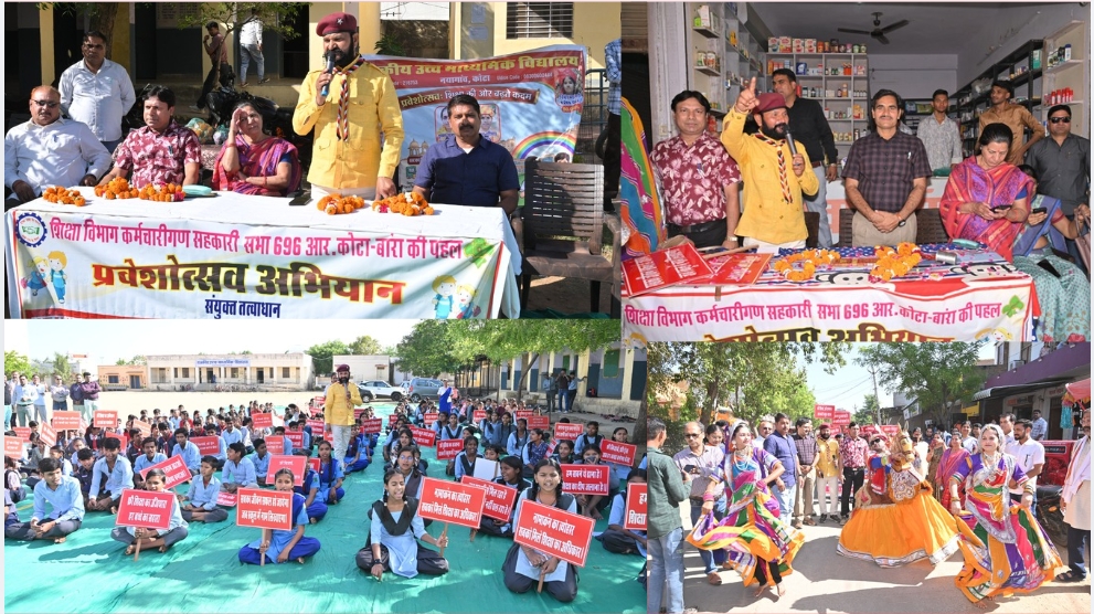 कोटा /कोटा शहर में शिक्षा के प्रति जागरूकता बढ़ाने और अधिक से अधिक बच्चों को स्कूल से जोड़ने के उद्देश्य से शिक्षा विभाग कर्मचारी गण सहकारी सभा 696 आर, कोटा-बारां एवं राजस्थान राज्य भारत स्काउट व गाइड स्थानीय संघ, कोटा दक्षिण के संयुक्त तत्वावधान में राजकीय उच्च माध्यमिक विद्यालय नयागांव में ब्लॉक स्तरीय प्रवेश उत्सव कार्यक्रम का भव्य आयोजन किया गया। कार्यक्रम में शिक्षा जगत से जुड़े कई गणमान्य व्यक्तियों की उपस्थिति रही और पूरे आयोजन में उत्साह और ऊर्जा का माहौल देखने को मिला।