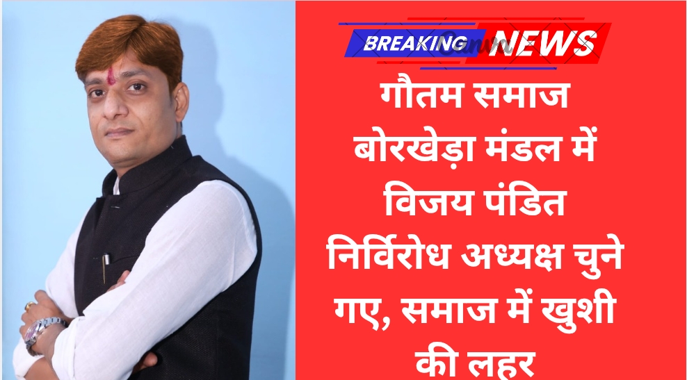 कोटा/कोटा के बोरखेड़ा मंडल में गौतम समाज के संगठनात्मक चुनावों के दौरान विजय पंडित को सर्वसम्मति से निर्विरोध अध्यक्ष चुना गया। इस अवसर पर समाज के वरिष्ठजन एवं युवाओं में खासा उत्साह देखने को मिला।
