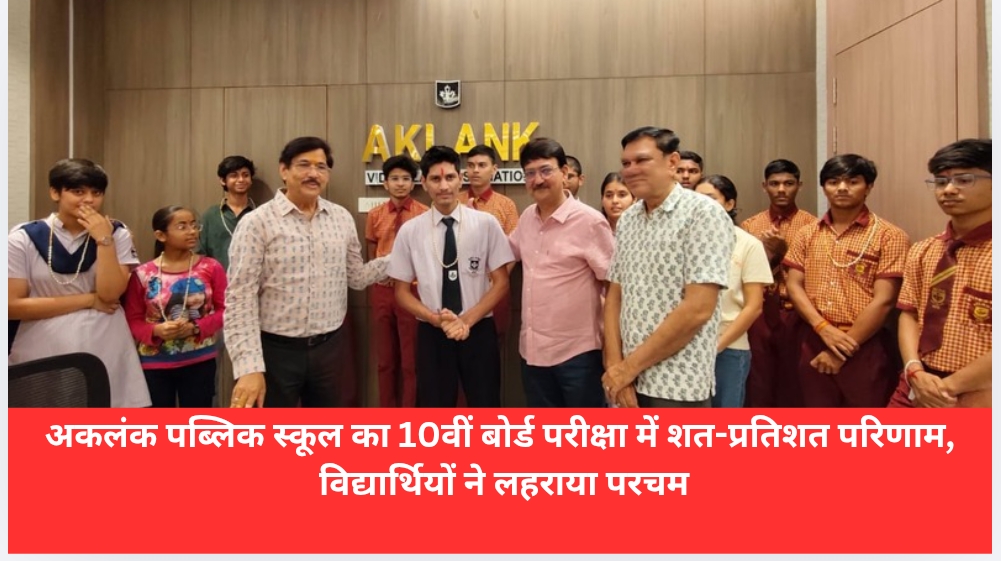 कोटा। शिक्षा नगरी कोटा स्थित अकलंक पब्लिक स्कूल ने एक बार फिर शैक्षणिक उत्कृष्टता का परिचय देते हुए केंद्रीय माध्यमिक शिक्षा बोर्ड (सीबीएसई) की 10वीं बोर्ड परीक्षा में शत-प्रतिशत परिणाम दर्ज किया है। विद्यालय के विद्यार्थियों ने शानदार प्रदर्शन कर उच्च अंक अर्जित करते हुए संस्थान का गौरव बढ़ाया।