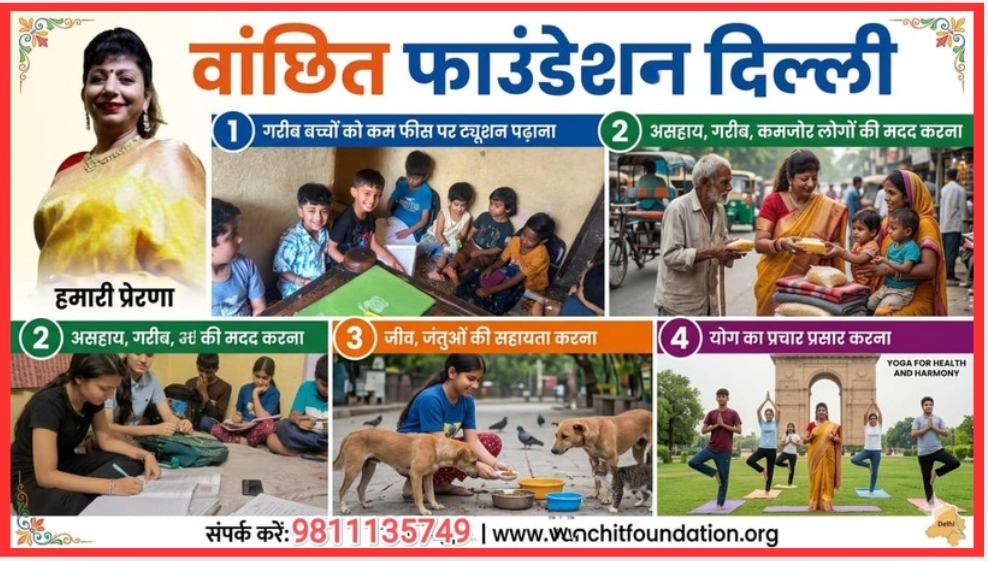 नई दिल्ली। वांछित फाउंडेशन दिल्ली की संस्थापिका डॉ. सुनीता मेहरोत्रा के नेतृत्व में संस्था लगातार समाजसेवा के क्षेत्र में उत्कृष्ट कार्य कर रही है। फाउंडेशन का मुख्य उद्देश्य गरीब, असहाय और जरूरतमंद लोगों की मदद करना तथा समाज में सकारात्मक बदलाव लाना है।