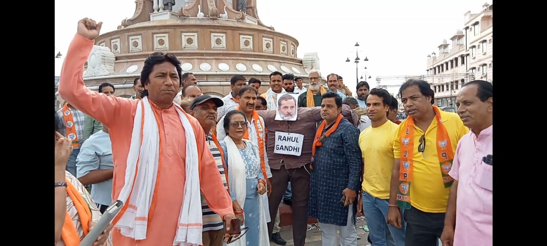 राहुल गांधी के हिंदू विरोधी बयान पर भाजपा नयापुरा मंडल ने राहुल गाँधी का पुतला दहन किया