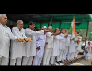 जिलाप्रधान श्रीमान आर सी गोयल साब ने ध्वजारोहण🇮🇳 किया और सामुहिक रूप से राष्ट्रगान गाया गया।