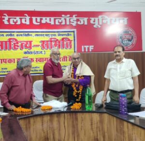 वेस्ट सेंट्रल रेलवे एम्पलाइज यूनियन एवं श्री हिंदी साहित्य समिति कोटा के संयुक्त तत्वावधान में मासिक काव्य गोष्ठी आयोजन किया गया।।सभापति डॉ रघुराज सिंह कर्मयोगी, यूनियन के महासचिव मुकेश गालव, अध्यक्ष भगवत सिंह मयंक,मुख्य अतिथि जितेंद्र निर्मोही, विशिष्ट अतिथि प्रेम शास्त्री,जमील कुरैशी,अरविंद सिसोदिया मंचासीन रहे। सफल संचालन कमलेश कमल ने कर रहे थे।अतिथियों ने मां सरस्वती के चित्र पर दीप प्रज्वलन कर माल्यार्पण किया। वंदना बालूलाल वर्मा ने प्रस्तुत की।