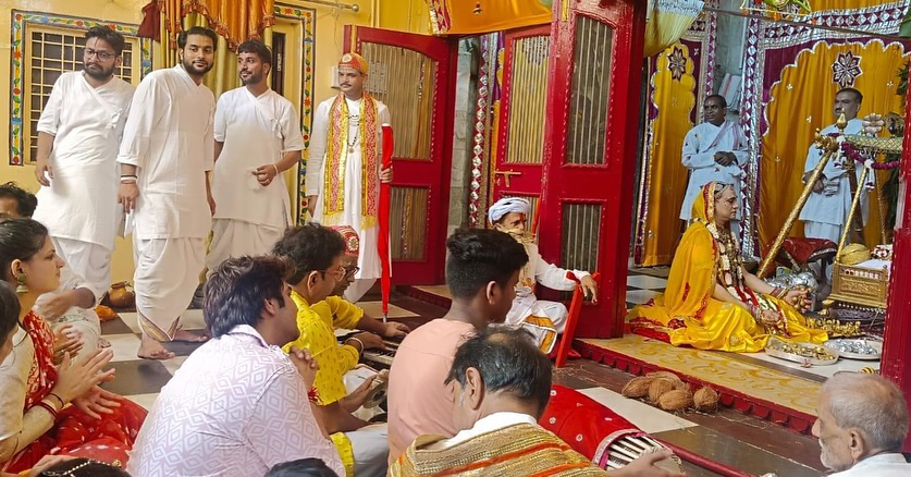 मथुराधीश जी की प्रथम पीठ युवराज गोस्वामी मिलन कुमार बावा ने स्त्री भाव से सेवा की