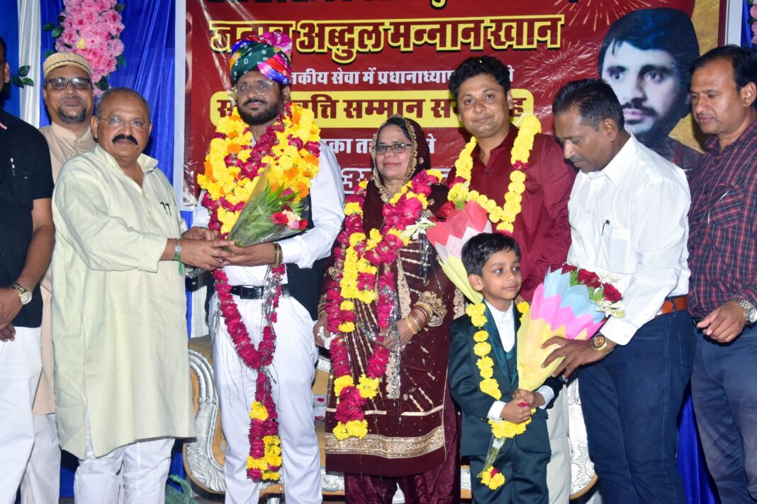 अनार वाले बाबा परिसर मे एक समारोह रखा गया जिसमें लोक तांत्रिक महासंघ के अध्यक्ष अब्दुल मन्नान खान का साफा प्रतिक चिंह मालाऔ से भव्य स्वागत किया और सभी अतिथियों व पदाधिकारीयो का साफा व महिलाओं का साल ओडाकर सम्मान किया । कार्यक्रम मे प्रहलाद गुंजल पुर्व विधायक लोकसभा प्रत्याक्षी पवन मीणा उप महापौर कोटा दक्षिण पवन रविन्द्र त्यागी काग्रेंस शहर जिला अध्यक्ष कार्यकारी प्रदेश अध्यक्ष रामरतन सामरिया सम्भागीय महासचिव अजय सिंंह राठोड़ जिला महासचिव तीरथ शर्मा वरिष्ठ उपाध्यक्ष गोपाल मीणा संरक्षक नमोनारायण शर्मा दिपा शर्मा महिला शिक्षा विभाग राजस्थान अध्यक्ष महिला सम्भागीय अध्यक्ष रेखा कंवर उपाध्यक्ष रिना वर्मा ज्योति शर्मा शुशिला वर्मा जरीना बानो मनीषा गुप्ता बृजबाला मीणा आशा मिश्रा अंजुम ताहिरा नितू सिंंह मनीष भारती रियाज हुसेन लोकेश महावर रमेश बानो पैंशन मंच के सम्भागीय वरिष्ठ उपाध्यक्ष गोविंद शरण शर्मा जिला अध्यक्ष सत्येंद्र त्यागी महासचिव यज्ञदत्त हाडा वार्ड पार्षद नरेंद्र केथोलिया शफीक भाजपा उपाध्यक्ष पुर्व पार्षद उमर सिआईडी राष्ट्रीय शायर शाकिर यहसान खान व कोटा सहित राजस्थान के वरिष्ठ कर्मचारी नेता मन्नान खान के परिवार व मित्रगण शामिल रहे ।आदि महानुभावों पहुंच कर मन्नान बधाई देकर स्वागत व सम्मान किया कार्यक्रम 600 व्यक्ति शामिल हुए।