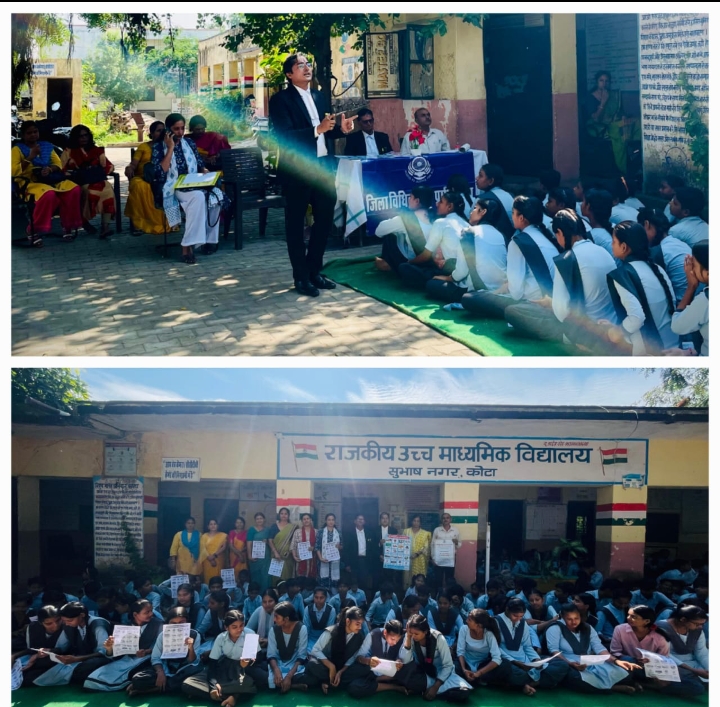 राजकीय उच्च माध्यमिक विद्यालय सुभाष नगर में विद्यार्थियों को पोस्को व साइबर संबंधित अपराध की कानूनी जानकारी दी गई। साथ ही कोटा शहर पुलिस द्वारा ऑपरेशन जागृति और गरिमा अभियान के तहत यह कानूनी जानकारी राजकीय उच्च माध्यमिक विद्यालय सुभाष नगर कोटा में अनंतपुर थाना अधिकारी श्री भूपेंद्र सिंह और नोडल अधिकारी श्री धनराज गोचर के सहयोग से विद्यार्थियों को बाल अपराध पॉक्सो एक्ट पुलिस, हेल्पलाइन नंबर साइबर क्राइम एवं अन्य धाराओं की जानकारी दी। जिला विधिक सेवा प्राधिकरण के सचिव गीता चौधरी के निर्देशन में लीगल ऐड डिफेंस काउंसिल के अधिवक्ता भुवनेश कुमार शर्मा ने विद्यार्थियों को साइबर अपराध के बारे में जागरूक किया। वहीं डिफेंस काउंसिल नरेंद्र डाबी ने विद्यार्थियों को पोस्को अधिनियम के संबंध में कानूनी जानकारी।