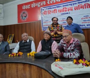 कोटा / श्री हिंदी साहित्य समिति कोटा एवं बेस्ट सेंट्रल रेलवे एम्पलाइज यूनियन के संयुक्त तत्व प्रधान में गणतंत्र दिवस के पावन पर्व के उपलक्ष में मासिक काव्य गोष्टी का आयोजन किया गया। अध्यक्षता राजस्थान सरकार के पाठ्य पुस्तक मंडल में प्रन्यासी अरविंद सिसोदिया एवं समिति के अध्यक्ष डॉ रघुराज सिंह कर्मयोगी ने की। मुख्य अतिथि के पद पर प्रख्यात कवि किशन लाल वर्मा सुशोभित रहे।भगवत सिंह मयंक, नंदकिशोर मीणा, जमील कुरैशी विशिष्ट अतिथि के रूप में पदासीन रहे। गोष्ठी का सफल संचालन बाल साहित्यकार महेश पंचोली ने किया। मंचासीन अतिथियों द्वारा मां सरस्वती के चित्र पर माल्यार्पण किया गया। इसके बाद सरस्वती वंदना भगवत सिंह मयंक ने की।