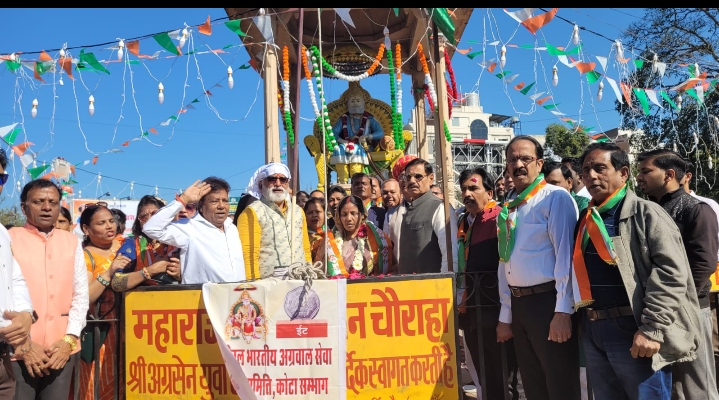 कोटा /*अखिल भारतीय अग्रवाल सेवा उत्थान समिति कोटा संभाग के तत्वाधान में हर वर्ष की भांति इस वर्ष भी 26 जनवरी 2025 रविवार को प्रातः 10:30 बजे अग्रसेन चौराहे पर 76 वां गणतंत्र दिवस पर झंडा फहराया गया। संभागीय अध्यक्ष मोहनलाल अग्रवाल एवं संभाग महामंत्री संजय गोयल ने बताया कि आज के कार्यक्रम के मुख्य अतिथि श्रीमान विवेक राजवंशी नेता प्रतिपक्ष कोटा दक्षिण, नगर निगम भारतीय जनता पार्टी के शहर जिला अध्यक्ष श्री राकेश जैन, विशेष अतिथि भाजपा के वरिष्ठ नेता श्री गोविंद जी शर्मा, पार्षद श्रीमती कौशल्या देवी सुमन की उपस्थिति में 76 वां राष्ट्रीय गणतंत्र दिवस मनाया गया।*
