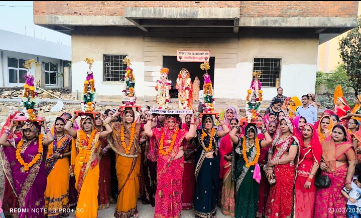 श्री जीनगर समाज पंचायत सोसायटी द्वारा गणगौर की शोभायात्रा निकाली गई। शोभायात्रा श्री जीनगर समाज पंचायत सोसायटी द्वारा शीतला सप्तमी पर हर वर्ष की भांति इस वर्ष भी कलश यात्रा निकाली गई। जीनगर समाज का यह पर्व गणगौर पर्व ऐतिहासिक होता है।जीनगर समाज के महामंत्री थानमल डाबी ने बताया कि गणगौर शोभायात्रा जीनगर समाज के छात्रावास भवन सुभाष नगर प्रथम से ईसर गणगौर शोभायात्रा निकाली गई जिसमें समाज की महिलाएं सज धज कर सोलह श्रृंगार कर ईसर माता की गणगौर को सर पर धारण कर शोभायात्रा में शामिल हुई। शोभायात्रा में समाज व्यक्ति महिलाएं शामिल हुई। शोभा यात्रा का जगह-जगह पुष्प वर्षा से स्वागत किया गया।