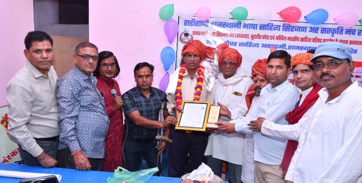31 मार्च2025 “हाड़ीराणी राजस्थानी भाषा साहित्य सिरजण अर संस्कृति मंच” रोटेदा बूँदी ,राजस्थानी भाषा सिरजण मंच टाकरवाड़ा,बूढादीत कोटा शाखा रोटेदा,अखिल भारतीय साहित्य परिषद कापरेन ,मानसरोवर साहित्य अकादमी ,राजस्थान के संयुक्त तत्वावधान में आज संस्कार कॉलेज कापरेन में राजस्थान दिवस एवं नव संवत्सर के अवसर पर क्षेत्रीय कवि लोकेश कुमार मीणा “आजाद” निवासी अरड़ाना की स्वरचित कृति आजाद वतन कर जाएंगे का भव्य कार्यक्रम सम्पन्न हुआ । इस कार्यक्रम के मुख्य अतिथि श्री चंदालाल चकवाला जी साहित्य अकादमी नई दिल्ली सदस्य ,अध्यक्षता श्री सी एल साँखला जी केंद्रीय साहित्य अकादमी के सर्वोच्च बाल साहित्य पुरस्कार से सम्मानित ,विशिष्ट अतिथि श्री राधेश्याम श्रृंगी जी संजय बाल विद्या निकेतन संस्थापक रहें । कार्यक्रम के संयोजक राजस्थानी भाषा के जाने माने रचनाकार देवकी दर्पण ने कहा युवाओं मे चिंतन और नव जाग्रति का संचार है आजाद वतन कर जाएंगे पुस्तक। कार्यक्रम का शुभारंभ सरस्वती के चित्र के समक्ष दीप प्रज्जवलित कर किया गया।इस अवसर पर अखिल भारतीय साहित्य परिषद कापरेन के अध्यक्ष श्री सत्यप्रकाश गौतम,सचिव श्री मनीष मेहरा ,महामंत्री श्री लोकेश आजाद कार्यक्रम संयोजक श्री देवकी दर्पण द्वारा वरिष्ठ साहित्यकार श्री सी एल साँखला को राजस्थान साहित्य अकादमी उदयपुर से विशिष्ट साहित्यकार सम्मान- पुरस्कार हेतु हाडीराणी राजस्थानी भाषा साहित्य सिरजण अर संस्कृति मंच द्वारा साॅल साफा सम्मान पत्र एवं प्रतीक चिन्ह देकर अभिनन्दन किया गया ।श्री चंदालाल चकवाला और श्री राधेश्याम श्रंगी को पगड़ी एवं संस्था का प्रतीक चिह्न भेंटकर सम्मानित किया गया । मुख्य अतिथि के रूप में श्री चंदालाल चकवाला ने कहा कि ग्रामीण अंचल के रचनाकारों को प्रोत्साहित करना आवश्यक है। अध्यक्षीय भाषण में सी एल सांखला ने कहा कि सृजन मनुष्य की आंतरिक पहचान कराता है और संस्कारित भी करता है। खाशकर मायड़ भाषा का सृजन संस्कृति की संरक्षण करता है।