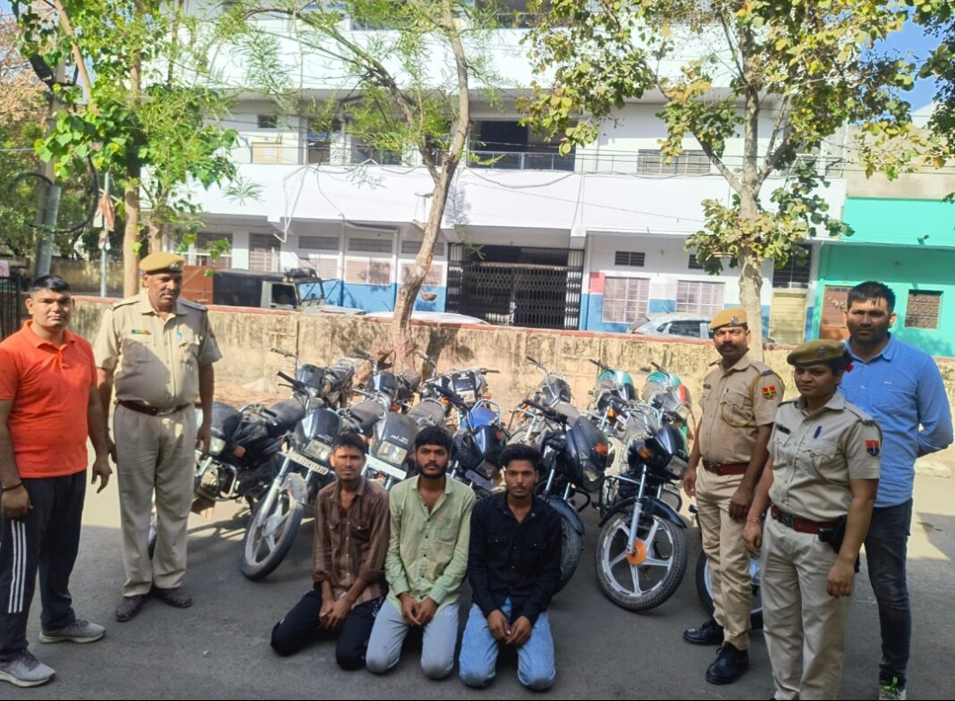 कोटा, अप्रेल। कोटा।सिटी एसपीआईपीएस डॉ. अमृता दुहन ने जानकारी देते हुए बताया कि शहर में लगातार बढ रही दुपहिया वाहन चोरी की घटनाओं को देखते हुए अतिरिक्त पुलिस अधीक्षक दिलीप कुमार सैनी व पुलिस उपाधीक्षक लोकेन्द्र पालिवाल के निर्देशन में विज्ञान नगर थाना प्रभारी मुकेश कुमार मीणा पुलिस इंस्पेक्टर के नेतृत्व में थाना विज्ञाननगर पर विशेष टीमों का गठन किया गया। गठित टीमों ने कार्यवाही करते हुए आरोपी सोनू मीणा,मनीष मीणा, कौशल मीणा को गिरफ्तार कर उनके कब्जे से विभिन्न थाना क्षेत्रों से चोरी किए गए 14 दु पहिया वाहन बरामद किये गये।