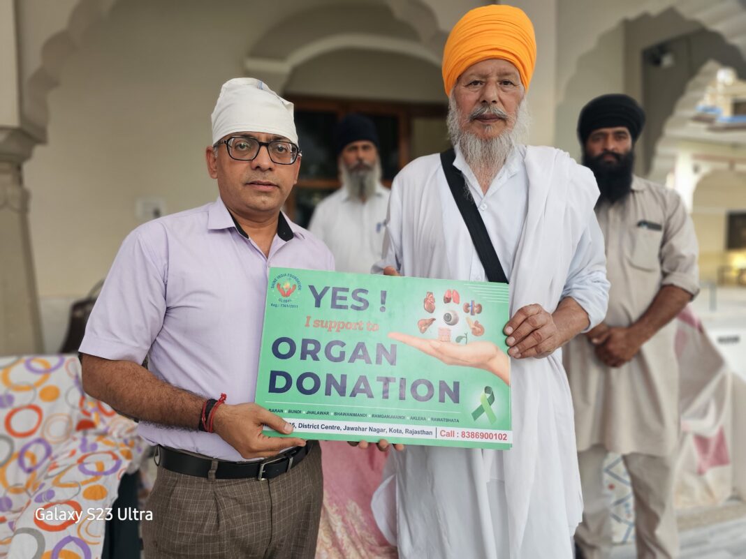 अंगदान जागरूकता पोस्टर का विमोचन करते हुए गुरुद्वारा श्री गुरु सिंह साहिब के गुरुद्वारा संचालक सरदार श्री बाबा लक्खा सिंह ने कहा कि,अंगदान का कार्य मनुष्य को ईश्वर तुल्य बनाता है,एक ब्रेनडेड व्यक्ति के दान किये अंग ,9 लोगों को मौत के मुँह से निकाल कर जीवन प्रदान करते है । आत्मा नश्वर है,वह तो तुरन्त ही एक शरीर से निकल कर,दूसरे शरीर में तुरंत ही जीवन पा जाती है,पर राख होने वाले शरीर से यदि किसी को जीवन मिलता है तो,इस कार्य से दिवंगत के मनुष्य जन्म को सार्थक बनाया जा सकता है।