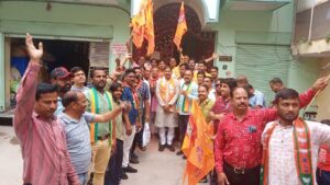भाजपा ने नववर्ष पर बांटे भगवा ध्वज, दी शुभकामनायें