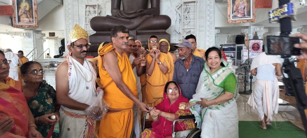 शांति धारा पुनर्जकों को अहिंसा चैनल द्वारा आचार्य श्री के सिक्के गिफ्ट दिए गए
