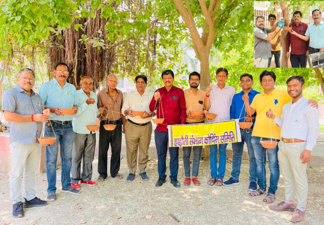 कोटा/समिति के सम्भागीय मीडिया प्रभारी विशाल उपाध्यक्ष ने बताया हाडौती सम्भाग कोचिंग समिति ने अपने सामाजिक दायित्व को निर्वहन करते हुये सम्भागीय अध्यक्ष बुद्धिप्रकाश शर्मा के नेतृत्व में शिक्षाविदों ने आज जनोपयोगी पार्क महावीर नगर तृतीय सेक्टर 5 में परिण्डे बांधे गए।