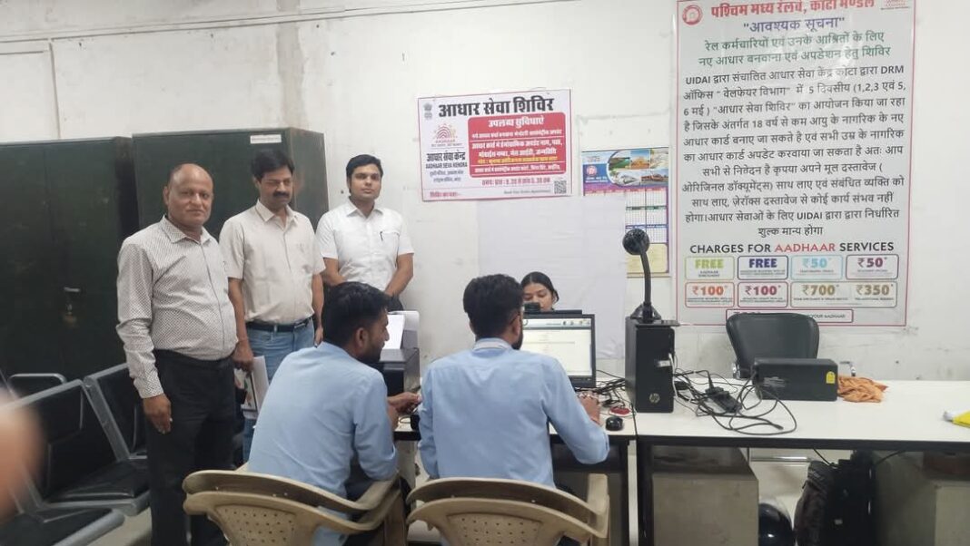 कोटा। रेल कर्मचारियों एवं उनके आश्रितों के लिए नए आधार बनवाना एवं अपडेशन हेतु शिविर UIDAI द्वारा संचालित आधार सेवा केंद्र कोटा द्वारा डीआरएम कार्यालय में वरिष्ठ मंडल कार्मिक अधिकारी श्री सुप्रकाश के नेतृत्व में वेलफेयर विभाग में 5 दिवसीय आधार सेवा शिविर का आयोजन किया जा रहा है। यह शिविर दिनांक 01 मई से 6 मई तक कार्यालय समय में लगातार संचालित होगी जिसके अंतर्गत 18 वर्ष से कम आयु के नागरिक के नए आधार कार्ड बनाए जा सकते है एवं सभी उम्र के नागरिक का आधार कार्ड अपडेट करवाया जा सकता है। कर्मचारियों एवं उनके आश्रित अपने मूल दस्तावेज के साथ अपना नया आधार अथवा अपडेशन करा सकते है।