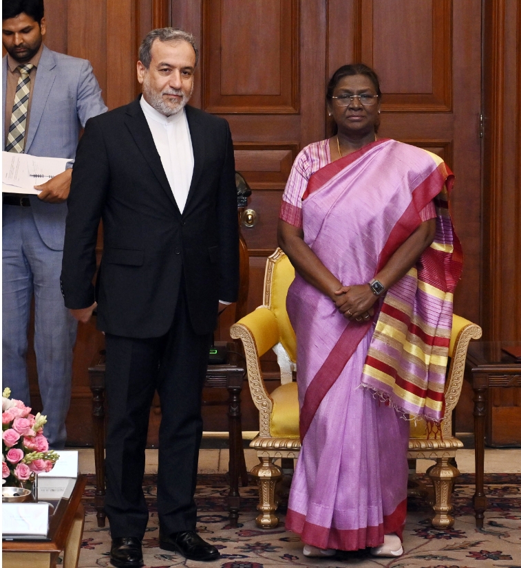 ईरान के विदेश मंत्री डॉ. अब्बास अराघची ने आज (8 मई, 2025) राष्ट्रपति भवन में राष्ट्रपति श्रीमती द्रौपदी मुर्मु से मुलाकात की।राष्ट्रपति भवन में डॉ. अराघची का स्वागत करते हुए राष्ट्रपति ने उल्लेख किया कि उनकी यह यात्रा दोनों देशों के बीच राजनयिक संबंधों की 75वीं वर्षगांठ के विशेष अवसर पर हो रही है।