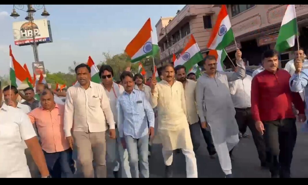 कोटा, 21 मई। ऑपरेशन सिंदूर की सफलता और भारतीय सेना के अदम्य साहस, पराक्रम और शौर्य के सम्मान में भाजपा कोटा शहर द्वारा जिला स्तरीय भव्य तिरंगा यात्रा रैली के आयोजन की कडी में बुधवार को नयापुरा क्षैत्र में तिरंगा यात्रा रैली का आयोजन किया गया।