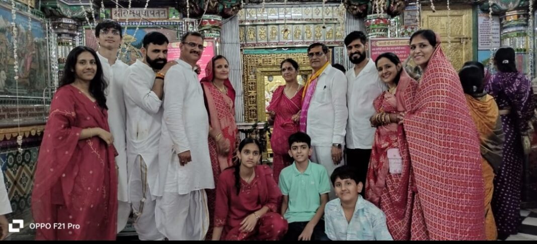 कोटा/हाल ही में कोटा संभाग रामगंजमंडी में स्थित ऐतिहासिक ,भव्य मंदिर श्री फलोदी माताजी महाराज खैराबाद धाम में एक आध्यात्मिकता से परिपूर्ण मेडतवाल वैश्य समाज के प्रकाशचंद गुप्ता एवं समस्त आचोलिया पटेल परिवार एवं देश भर की विभिन्न पंचायतों से पधारे समाज बंधु परिजनों की उपस्थिति में सामूहिक महाभिषेक संपन्न हुआ ।मेडतवाल समाज के वरिष्ठ समाज सेवी प्रकाशचंद गुप्ता ने बताया कि छह बजे से शुरू इस महाभिषेक के साथ फलोदी माताजी की महाआरती के साथ यह संपन्न हुआ और उसके बाद महाप्रसाद का वितरण हुआ और दूर दराज से पधारे सपरिवार समाज बंधुओं ने मा फलोदी धाम के दर्शन कर भोजन प्रसाद का आनंद लिया । प्रकाशचंद गुप्ता अचोलिया पटेल परिवार द्वारा कोटा मेडतवाल पंचायत की नव निर्वाचित कार्यकारिणी अध्यक्ष राधेश्याम बोबसमहामंत्री राजेश टांक ,कोषाध्यक्ष दिनेश गुप्ता एवं समस्त पदाधिकारियों एवं मेडतवाल वैश्य समाज के ओएसडी शिक्षा मंत्री सतीश गुप्ता का भी सम्मान किया ।सम्मान बी.के. सिंघी नरसिंहगढ़ ,सुनीता गुप्ता ,शारदा गुप्ता ,राजेश करावन,अरुण कुमार सिंघी ,मुरली मनोहर गुप्ता ब्यावरा , घनश्याम आचोलिया ,मधुकर गुप्ता ,डॉ नयन प्रकाश गांधी एवं कई अन्य टीम सदस्यों टीम द्वारा किया गया। कई अन्य समाज सेवी का भी उपरना ,पगड़ी , बेज मा फलोदी शिल्ड द्वारा सम्मान किया गया ।सभी कार्यरत सेवा भावी टीम को प्रसाद का पैकेट भी वितरण किया गया । अंत में प्रकाशचंद गुप्ता ने सभी समाज बंधुओं ट्रस्टी टीम का आभार व्यक्त किया ।