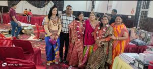 🫵पार्वती अभिनय में प्रीति गांधी एवं अन्य सखी टीम शिव की आराधना करते हुए एवं शिव अभिनय में अनीता गुप्ता प्रकट होते हुए पार्वती की तपस्या शिव जी स्वीकार करते हुए