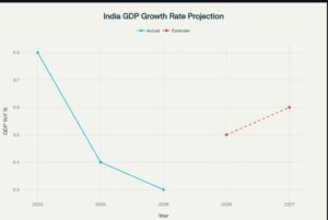 चीन से तुलना: इसकी तुलना में, चीन की विकास दर 4.8% और अमेरिका की 1.9% अनुमानित है। यह स्पष्ट रूप से दर्शाता है कि वैश्विक आर्थिक विकास का केंद्र अब भारत की ओर स्थानांतरित हो रहा है।