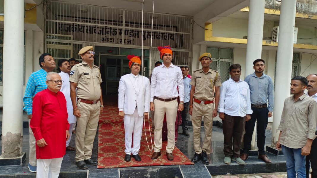 राजकीय सार्वजनिक मण्डल पुस्तकालय कोटा मे 79 वा स्वतन्त्रता दिवस समारोह का आयोजन किया गया जिसमे मुख्य अतिथि डा नितिन शर्मा फिजिओथेरेपिस्ट , अध्यक्षता रमेश चौहान पर्यावरणविद तथा विशिष्ट अतिथि अधिवक्ता नरेंद्र शर्मा गेस्ट ऑफ ऑनर मधुसूदन शर्मा पुस्तकालय अध्यक्ष गीतांजली मेडीकल कॉलेज कोटा ने की | मंच संचालन वयोवृद्ध पाठक के.बी. दीक्षित ने किया | कार्यक्रम प्रबंधन अजय सक्सेना , रोहित नामा एवं राम निवास धाकड़ ने किया | गार्ड ऑफ ऑनर यतिश सक्सेना एवं छीतर लाल ने किया | इस अवसर पर पुस्तकालय की सेयावमे समर्पित गृह रक्षा स्वयसेवकों एवं रात्रिकालीन चोकीदार – समेत श्रेष्ठ पुस्तकालय कर्मियों का सम्मान किया गया | ध्वजारोहण मुख्य अतिथि डा नितिन शर्मा द्वारा किया गया |