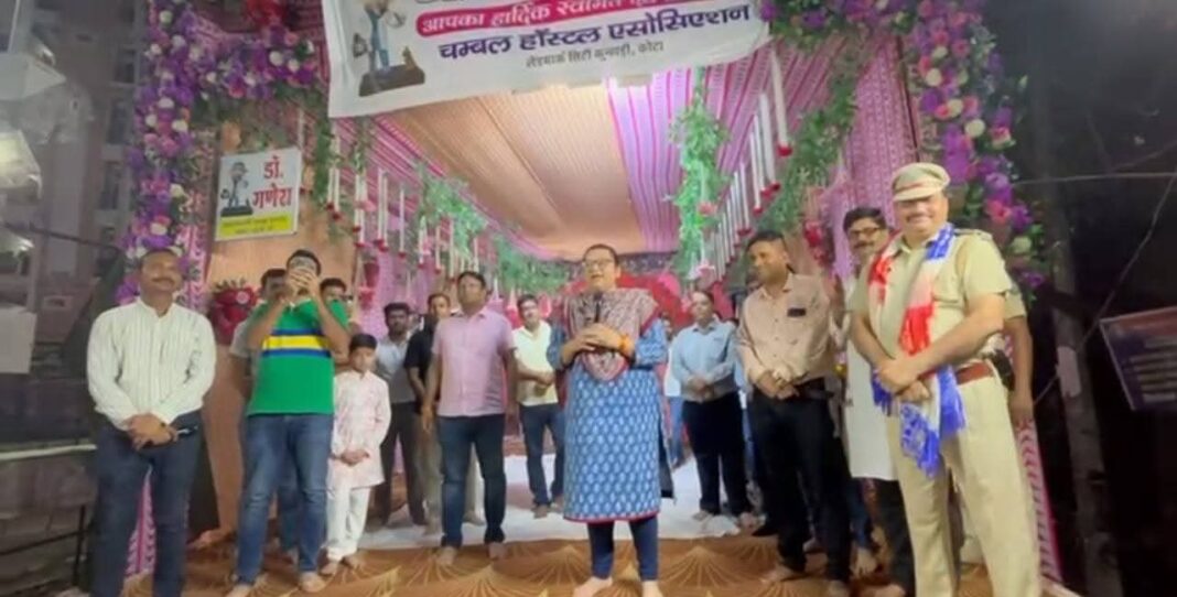 कोटा/चम्बल हॉस्टल ऐसोसिएशन की ओर से गणेशोत्सव के तहत प्रतिदिन संध्या आरती हो रही है और कोटा में देशभर से आए स्टूडेंटों को मोटिवेट किया जा रहा, धर्म से जोड़ते हुए उनकी सफलता का मार्ग प्रश्स्त किया जा रहा है। शनिवार को संध्या आरती में कोटा शहर पुलिस अधीक्षक तेजस्वनी गौतम ने कोचिंग स्टूडेंटों को मोटिवेट किया और कहा कि जो ड्रीम आप लेकर कोटा आए हैं, देश भर से बच्चें यहां आए हैं, वह मेहनत करें और गणपति बप्पा से प्रार्थना करें की वह आपको सफल करें। उन्होंनें कहा कि हम सभी मोबाइल चला रहे हैं, नेट का इस्तेमाल पढाई के साथ सोशल मीडिया पर कर रहे हैं, लेकिन जो पोस्ट हम डाल रहे हैं, उसकी जिम्मेदारी भी हमारी है, ऐसे में हमे पढाई पर ध्यान देना चाहिए और पॉजीटिव रहना चाहिए। एसपी तेजस्वनी ने बच्चों को सफलता के पाने के टिप्स भी दिए और हर संभव मदद का भरोसा दिलाया। ऐसोसिएशन के अध्यक्ष विश्वनाथ शर्मा ने कहा कि हमारा प्रयास रहता है कि हम एक-एक बच्चें की ठीक से केयर करें। इसके लिए प्रशासन हमारी हर संभव मदद करता है, बच्चों को भी अपने माता पिता का सपना साकार करना चाहिए और जिंदगी में कभी हार नहीं माननी चाहिए। इस अवसर पर महाआरती की गई और प्रसाद वितरण किया गया। गणेश महोत्सव में चंबल हॉस्टल एसोसिएशन के अध्यक्ष विश्वनाथ शर्मा, सचिन सतप्रीत सिंह, कोषाध्यक्ष संदीप अग्रवाल, कैलाश अग्रवाल, जितेंद्र पारीक, राधेश्याम प्रजापत, बंटी नागर, रमेश धाकड़, अर्जुन सिंह, गिरीश, राजेश कटारिया, मोहित शेट्टी सहित कई सदस्य मौजूद थे।