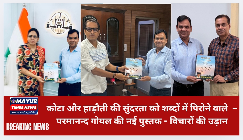 कोटा/कोटा और हाड़ौती अंचल के पर्यटन स्थलों को शब्दों की खूबसूरत तस्वीर देने वाले लेखक परमानन्द गोयल एक बार फिर चर्चा में हैं। “टूरिज्म- विजिट कोटा – यादगार कोटा” जैसी लोकप्रिय पुस्तक के बाद उनकी नई कृति “विचारों की उड़ान : जीवन आपका, नज़रिया आपका और दृष्टिकोण भी आपका” पाठकों के सामने आई है, जिसमें जीवन, समाज और दृष्टिकोण की गहन पड़ताल की गई है।