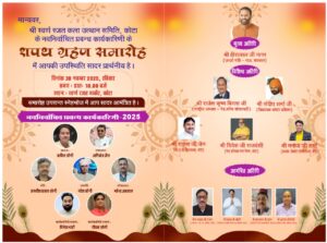 समारोह में सभी पदाधिकारियों को विधिवत शपथ दिलाई जाएगी। कार्यक्रम को सफल बनाने के लिए समिति द्वारा सभी तैयारियाँ पूर्ण कर ली गई हैं।