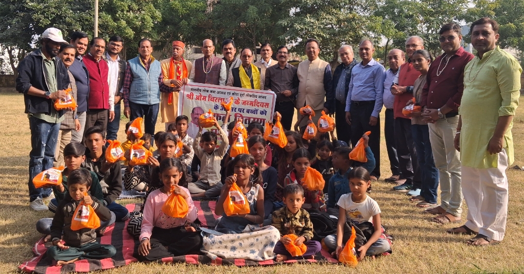 रिटायर्ड ऑफिसर्स ने बच्चों के बीच बनाया माननीय लोकसभा अध्यक्ष का जन्मदिन