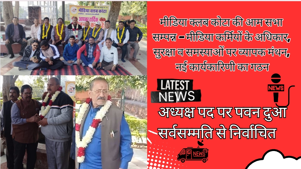 कोटा। मीडिया क्लब की महत्वपूर्ण बैठक रविवार को लक्की बुर्ज नयापुरा में आयोजित हुई, जिसमें प्रिंट, इलेक्ट्रॉनिक और वेब मीडिया के वरिष्ठ व युवा पत्रकार बड़ी संख्या में शामिल हुए। बैठक में पत्रकारों की सुरक्षा, अधिकार, बढ़ते उत्पीड़न, दबावपूर्ण कार्रवाइयों और झूठे मुकदमों पर गंभीर चर्चा हुई। पत्रकारों ने बदलते मीडिया माहौल में बढ़ते जोखिमों और प्रशासनिक दबावों को लेकर एक संयुक्त रणनीति बनाने का निर्णय लिया।