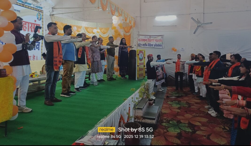 कोटा/राजस्थान शिक्षक महासंघ का राज्य स्तरीय शैक्षिक अधिवेशन महात्मा गाँधी राजकीय उच्च माध्यमिक विद्यालय मल्टीपरपज गुमानपुरा कोटा में आयोजित हुआ। प्रदेश कोर कमेटी सदस्य रमीज़ राजा ने बताया कि सर्वप्रथम अधिवेशन सत्र का उद्धघाटन प्रदेश अध्यक्ष श्याम सुंदर शर्मा व प्रदेश व जिला कार्यरिणी द्वारा विद्यालय परिसर में पौधारोपण किया गया। कार्यक्रम के मुख्यातिथि राजेश बिरला चैयरमेन कोटा नागरिक सहकारी बैंक, अति विशिष्ट अतिथि पंकज मेहता वरिष्ठ नेता भाजपा,विशिष्ट अतिथि अनिल तिवारी, मीडिया प्रभारी भाजपा और चन्द्र प्रकाश महावर रामपुरा मण्डल अध्यक्ष भाजपा,द्वारा विधिवत शुभारंभ माँ सरस्वती की तस्वीर पर दीप प्रज्ज्वलित व माल्यार्पण कर गया। कार्यक्रम के मुख्यातिथि राजेश बिरला ने सम्मेलन में शिक्षकों को संबोधित करते हुए कहा कि शिक्षक समाज के प्रति कर्तव्यनिष्ट व उत्तरदायित्व व्यक्ति होता हैं जो राष्ट्र व समाज के निर्माण में भावी भूमिका निभाता हैं। अति विशिष्ट अतिथि पंकज मेहता ने संबोधित करते हुए कहा कि संघ द्वारा शिक्षक हितों में जो मांगे रखी गई उन्हें सरकार तक पहुंचाने का आश्वासन दिया। विशिष्ट अतिथि अनिल तिवारी ने गुरु की महत्ता पर प्रकाश डाला।