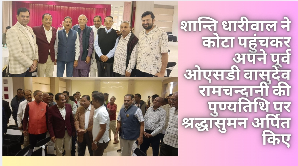 कोटा/पूर्व नगरीय विकास एवं स्वायत्त शासन मंत्री तथा वर्तमान विधायक कोटा उत्तर श्री शान्ति धारीवाल ने कोटा पहुंचकर अपने मंत्री पद के कार्यकाल में ओएसडी रहे स्वर्गीय वासुदेव रामचन्दानी की पुण्यतिथि पर उन्हें श्रद्धासुमन अर्पित किए। इस अवसर पर एक निजी होटल में आयोजित श्रद्धांजलि कार्यक्रम में स्वर्गीय रामचन्दानी के चित्र पर पुष्प अर्पित किए गए।