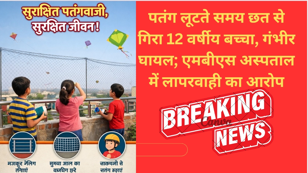 कोटा शहर के स्टेशन क्षेत्र में रविवार सुबह एक दर्दनाक हादसा सामने आया, जहां पतंग लूटने के दौरान 12 वर्षीय बालक छत से गिरकर गंभीर रूप से घायल हो गया। हादसे में बच्चे के सिर और चेहरे पर गंभीर चोटें आई हैं। घायल अवस्था में परिजन उसे तत्काल एमबीएस अस्पताल लेकर पहुंचे, जहां इलाज में देरी और अव्यवस्थाओं को लेकर परिजनों ने अस्पताल प्रशासन पर लापरवाही के आरोप लगाए हैं।