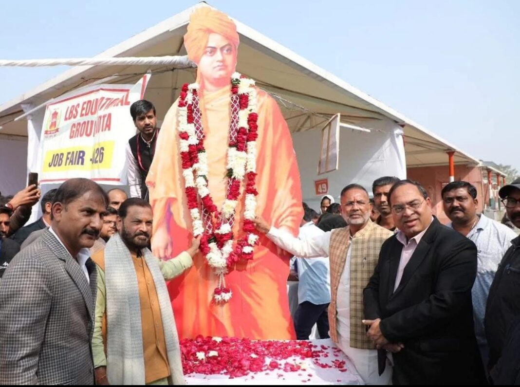 इस दौरान संबल मेले में आए सभी युवाओं ने भी प्रतिमा के साथ छायाचित्र खिंचवाए एवं पुष्पांजलि अर्पित की, परिसर “स्वामी विवेकानंद अमर रहें” के जयकारों से गूंज उठा।कार्यक्रम का उद्देश्य युवाओं को स्वामी विवेकानंद जी के विचारों से प्रेरित कर राष्ट्र निर्माण में उनकी सक्रिय भागीदारी सुनिश्चित करना रहा।