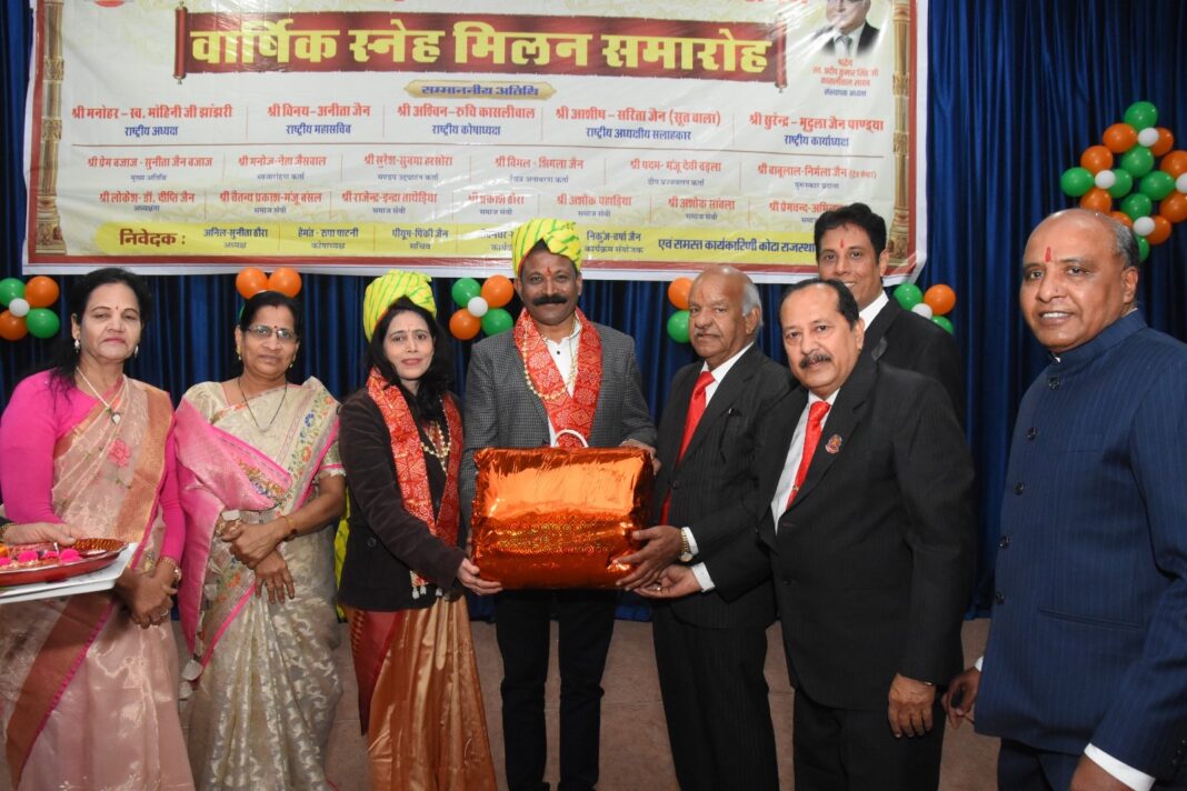 कोटा। दिगंबर जैन सोशल ग्रुप फेडरेशन ‘कोटा राजस्थान रीजन’ द्वारा आयोजित शपथ ग्रहण समारोह एवं वार्षिक स्नेह मिलन समारोह रामशंताएभ सभागार, स्वामी विवेकानंद विद्यालय, महावीर नगर तृतीय, कोटा में आयोजित किया गया। समारोह में रीजन के 16 से अधिक सोशल ग्रुपों के पदाधिकारी एवं सैकड़ों सदस्य उपस्थित रहे। राष्ट्रीय पदाधिकारियों द्वारा पदाधिकारियों को सेवा एवं दायित्व की शपथ दिलाई गई, साथ ही नए सदस्यों को भी फेडरेशन के सेवा मूल्यों से जोड़ते हुए शपथ ग्रहण कराया गया।